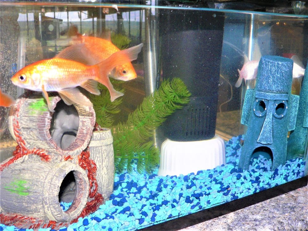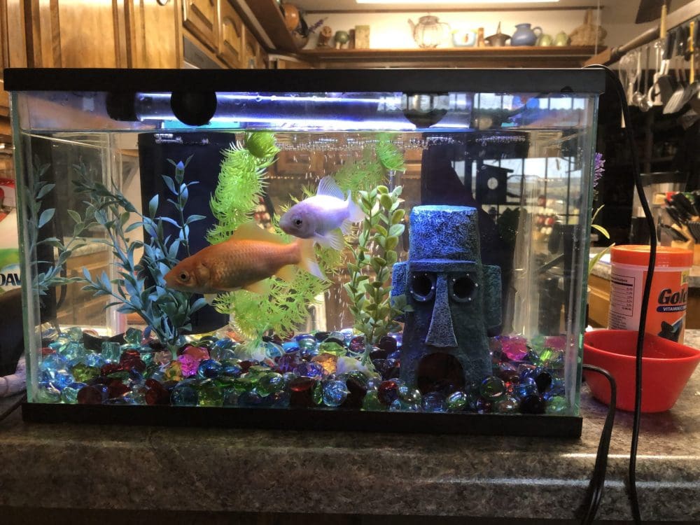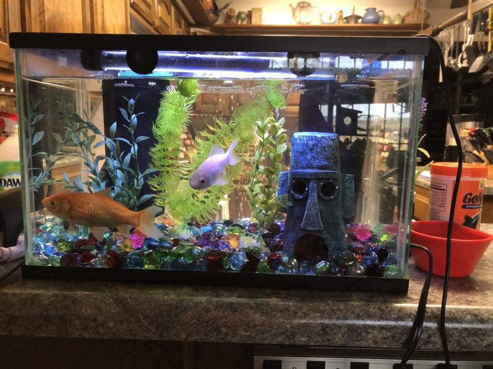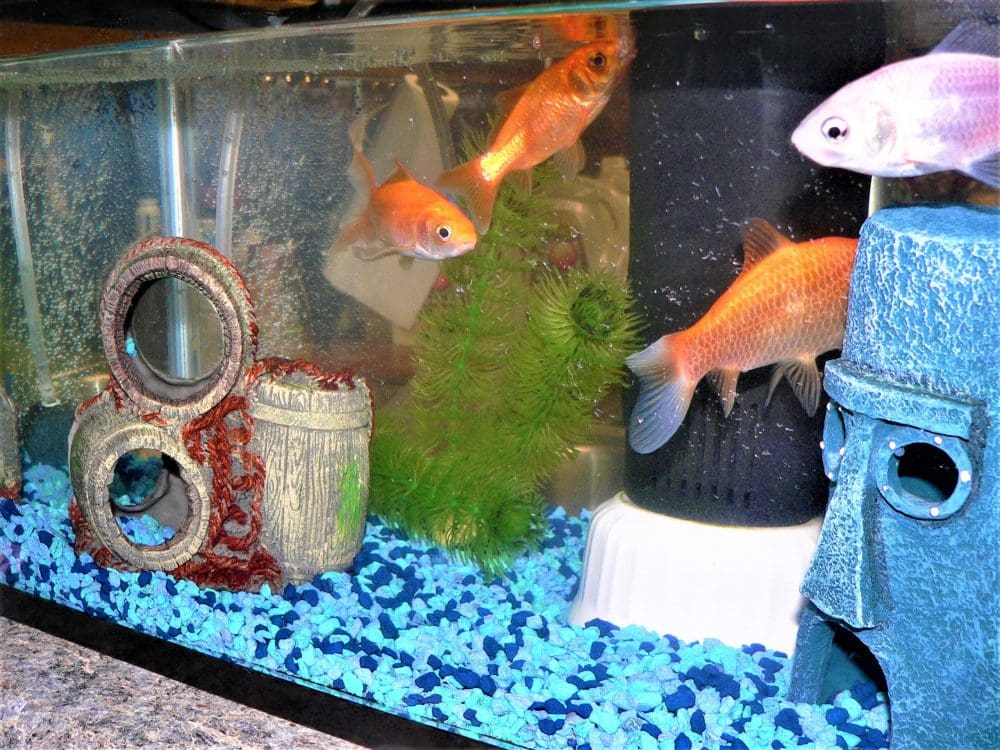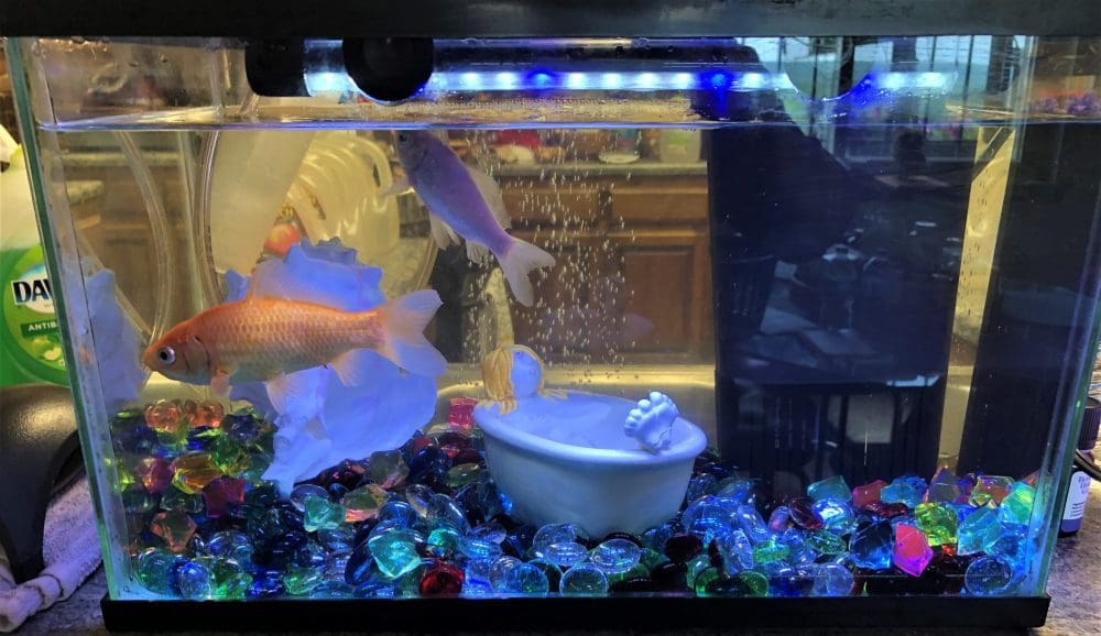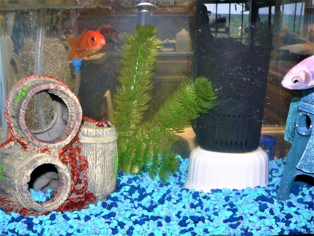 Meanwhile, the fish have a clean tank, clean glass beads, clean decorations, lots of bubbles putting oxygen into the water, and a clean filter and system that is ‘supposed’ to handle a 10-gallon tank, but doesn’t do a stellar job on this one.