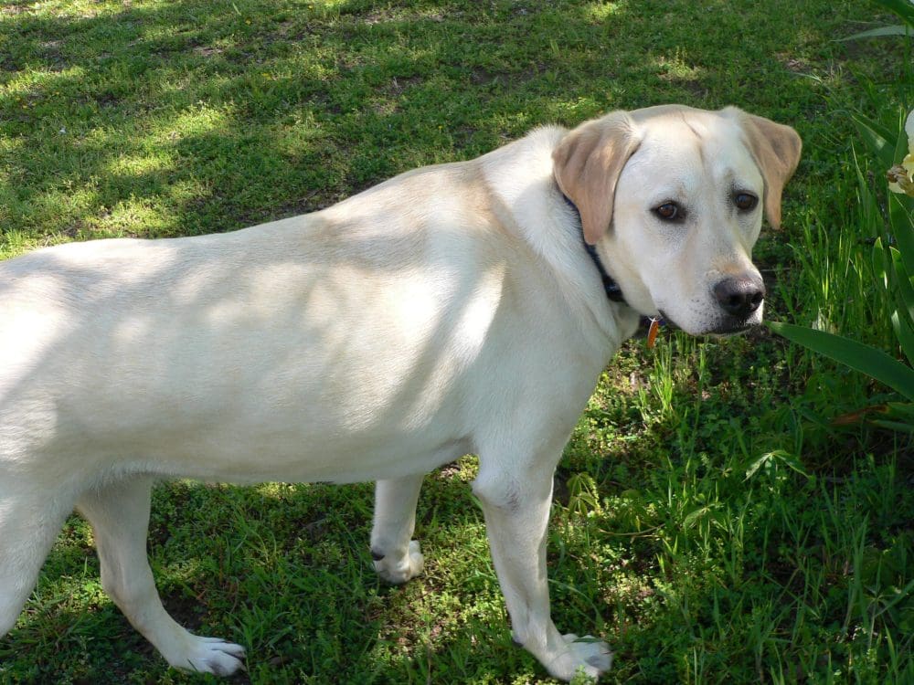 Amber is a really sweet, wonderful dog. I particularly enjoy her when it’s just the family here. She responds eagerly – probably in anticipation of a ‘cookie’ when we go back inside – but is truly fun, affectionate, curious and playful. (It’s when others come here, or we go out in public that she tends to go ‘maniac,’ requiring all our tools, skills, and dubious intelligence to handle things. We have agreed that we need to invite more people here, and put the no-pull collar and leash on her when she is allowed to get out of the car on our outings, giving her more occasions to meet people, LISTEN to us, and hopefully, do what we say.