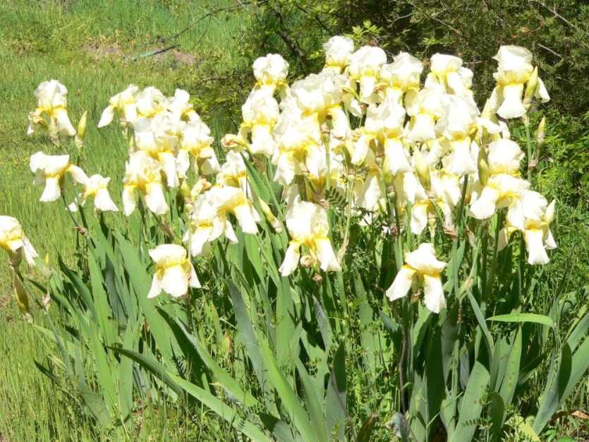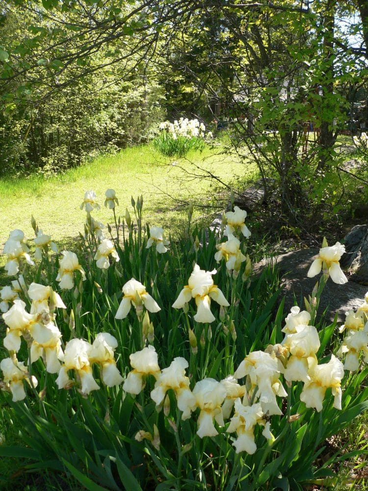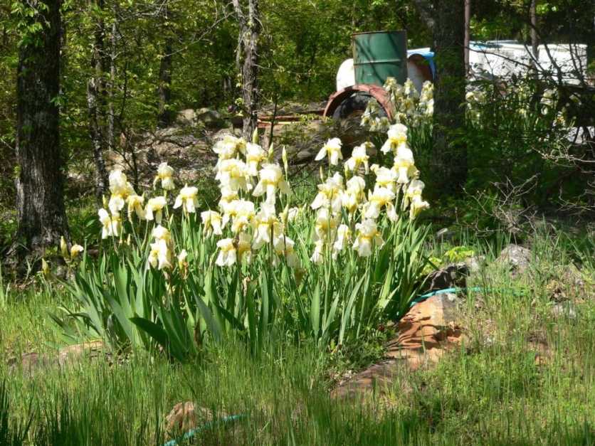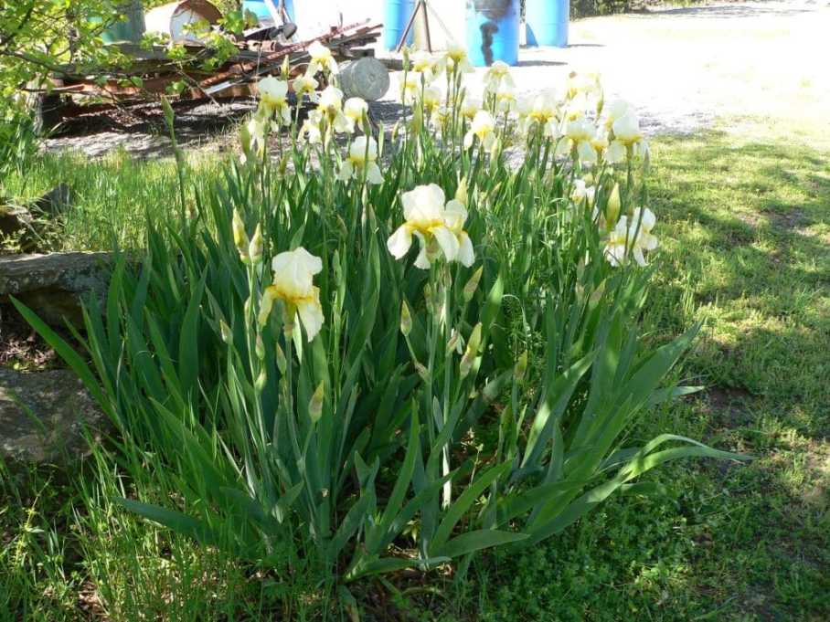 The deep purple iris is fading, but the yellow iris is all over the yard in clusters. My husband is less than impressed with the yellow ones, but the display is very impressive to ME. (Each pic displayed here is a different clump of iris, plus there is more going down the driveway!)