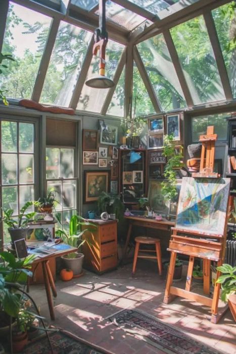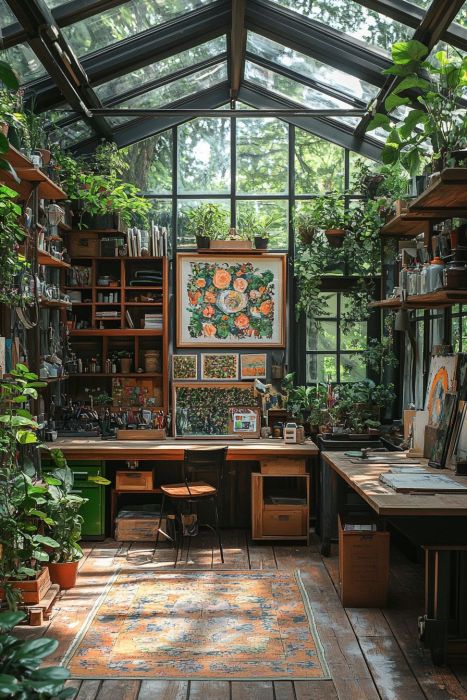 This is another of my favorites because of all the plants and the beauty of the design. A greenhouse type escape area, where hours would pass while you dreamed of what you wanted to do, or began work. It’s not clear from this picture whether the lighting is good if it’s not daytime or it’s a cloudy or rainy day, but I could sure figure out solutions to that…