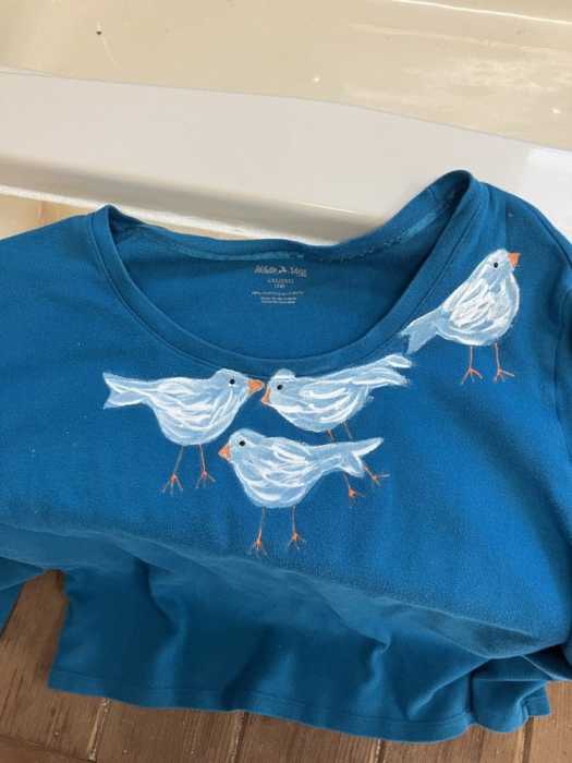 Yesterday I painted some white birds on my long-sleeved blue tee. Sigh.