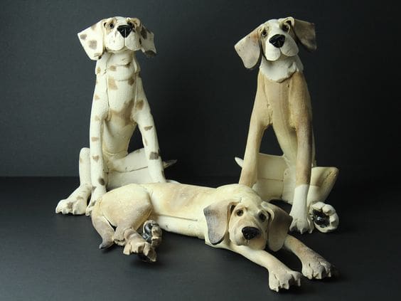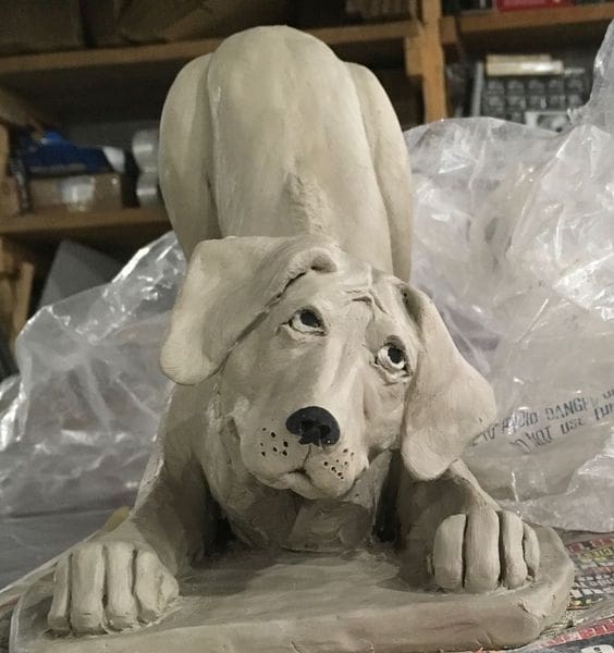 I absolutely LOVE the way she has crafted her sculptures of dogs being real dogs. The poses make me smile. She is a true artist – not only making the art come to life, but making you REACT to her work. She is based in England, and I will look for more to show you.