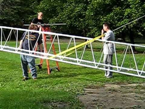 We have four 10 foot sections of tower that look similar to this. On the top we have a humongous antenna, called a ‘quad’ type, a square of metal, fiberglass, and two rounds of wire at two different lengths for two different purposes.