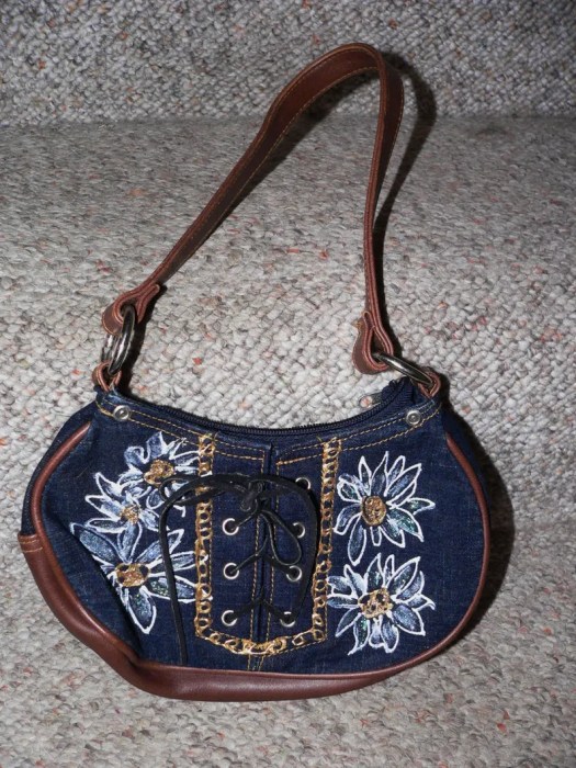 I found a plain, but cute, denim purse. To me, it cried out for some daisies and 3-D gold accents. This is painted on the back, as well. Nice size – 10″x 6″, and can be carried as a shoulder purse, too. One of a kind. $24.99 – FREE SHIPPING. You can find this, and other painted purses, HERE – at HandmadeHavenbyLinda on Etsy.