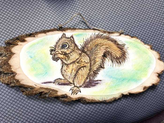 The wood-burning is done first. Then the several steps in painting. After one is ordered, I’ll personalize it and then protect it with several layers of polyurethane spray.