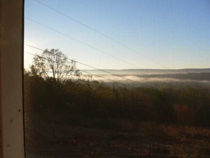 My sister-in-law said it was a shame I didn’t get any photos of the morning view out of our back yard, where I was talking about it looking like someone had spread rolls of cotton between the ridge lines. It’s almost impossible to take pics of this, but I tried. This is for you, Sweet ML.