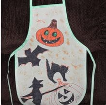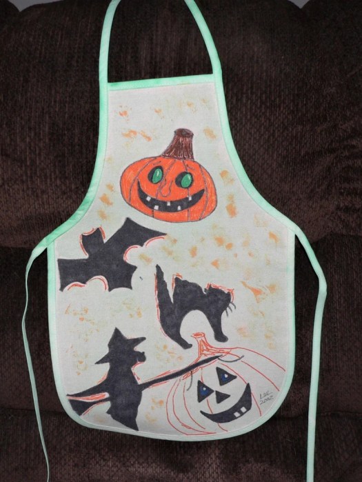 Last call for you to order either of these child-sized Halloween aprons in time for Halloween. One-of-a-kind, hand-painted child’s apron. Size is 2-6 years. The apron is 19″ long and 12.5″ wide, not including neck loop or ties. $19.99 with FREE SHIPPING to the contiguous U.S. HandmadeHavenbyLinda on Etsy