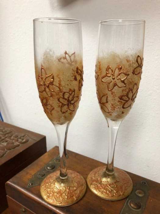 Champagne Flutes “Copper Flowers” One-of-a-kind, hand-painted pair – $41.99 with FREE SHIPPING to the contiguous U.S. HandmadeHavenByLinda on Etsy