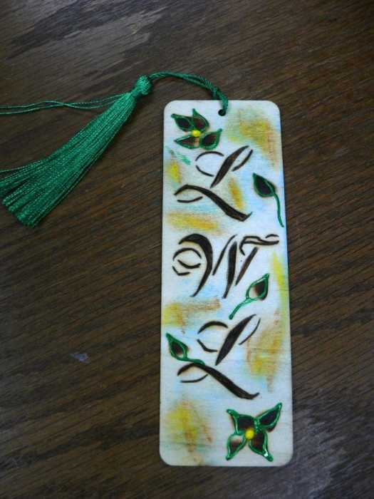 I’m going to add wood-burned and hand-painted bookmarks to Etsy starting next year. This is a sample of one I’ve made for the site –