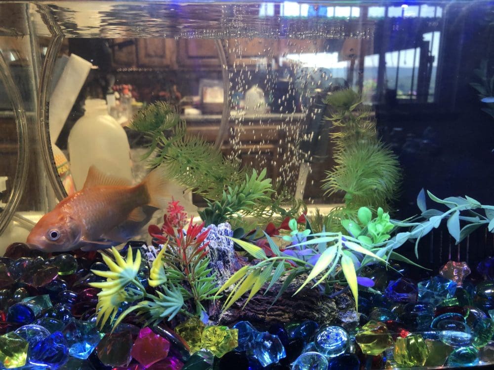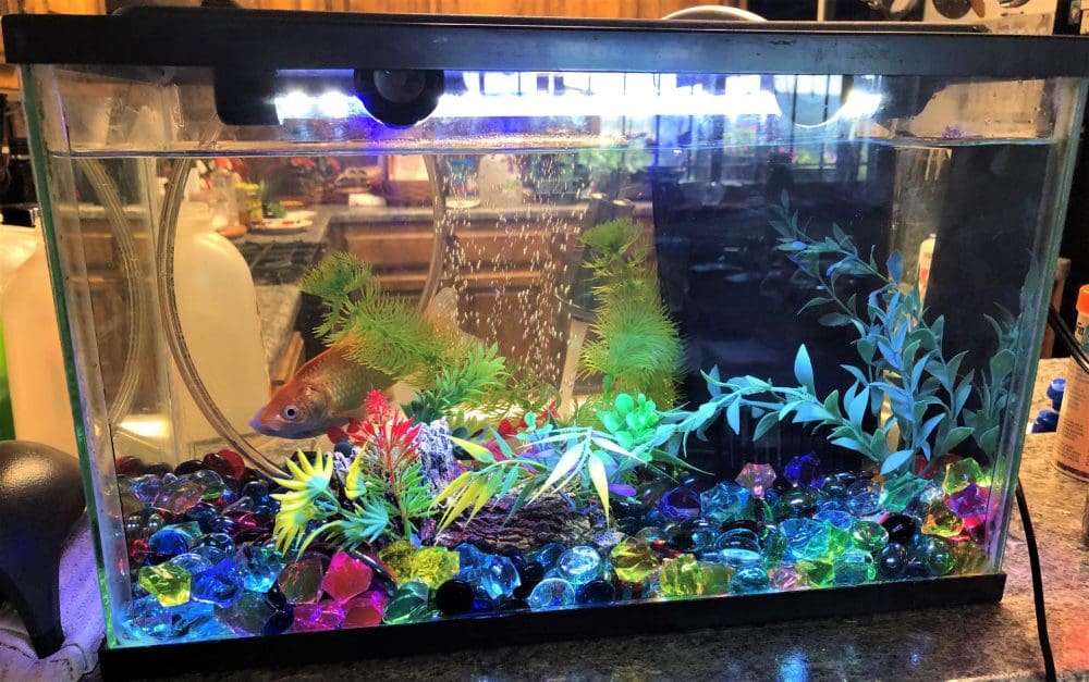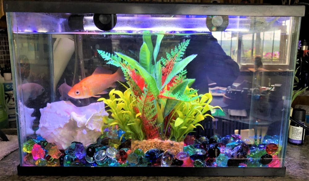 Meanwhile, the fish have a clean tank, clean glass beads, clean decorations, lots of bubbles putting oxygen into the water, and a clean filter and system that is ‘supposed’ to handle a 10-gallon tank, but doesn’t do a stellar job on this one.