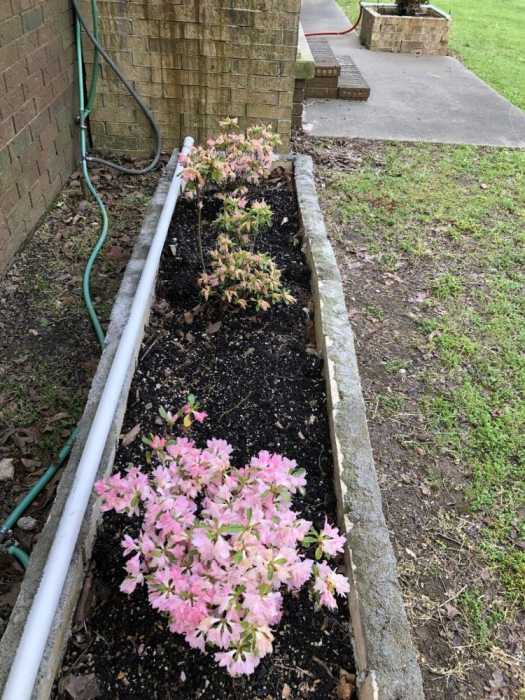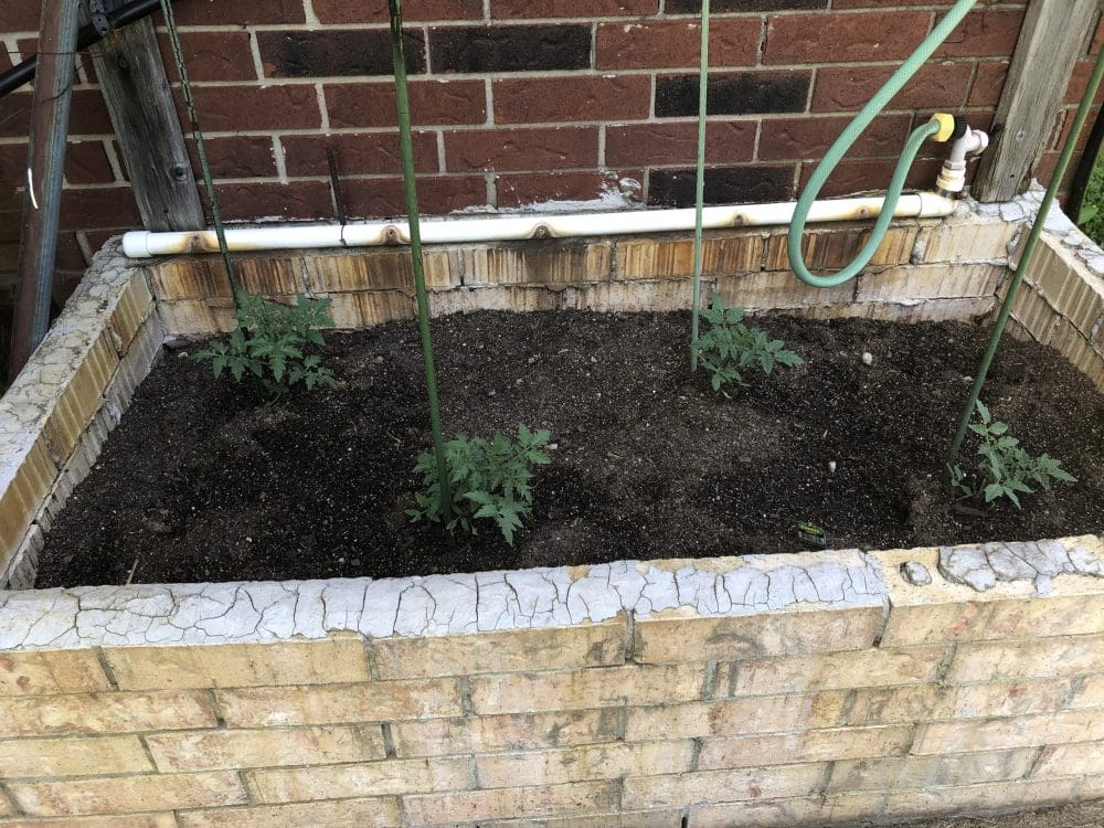This is our garden, minus two tomato planters on the opposite end of the house. It’s a raised-bed, square foot garden.