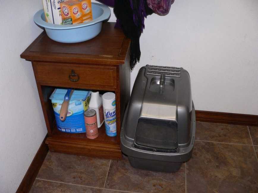 This is the small table that used to be in the foyer, plus the cats’ box.