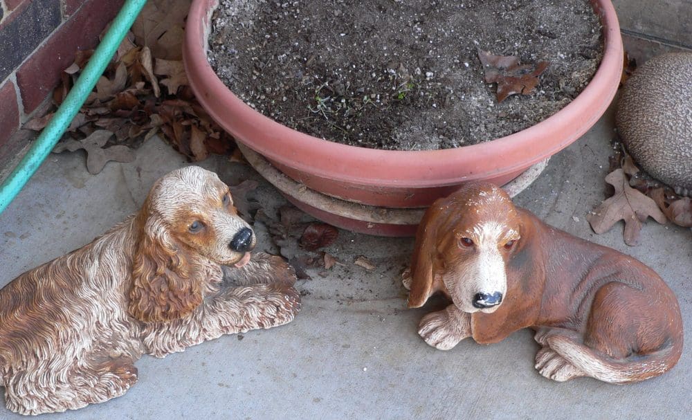 On the way home from Lunch Bunch and errands, we saw a Garage Sale sign. We had never been up this driveway, and, in fact, were only vaguely aware that someone lived back there. There was kind of a long driveway that twisted and turned, finally coming up to a lovely home and detached shop. They had four doggies, one of whom was interested in saying “hi” to us.