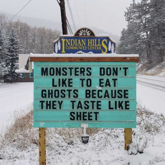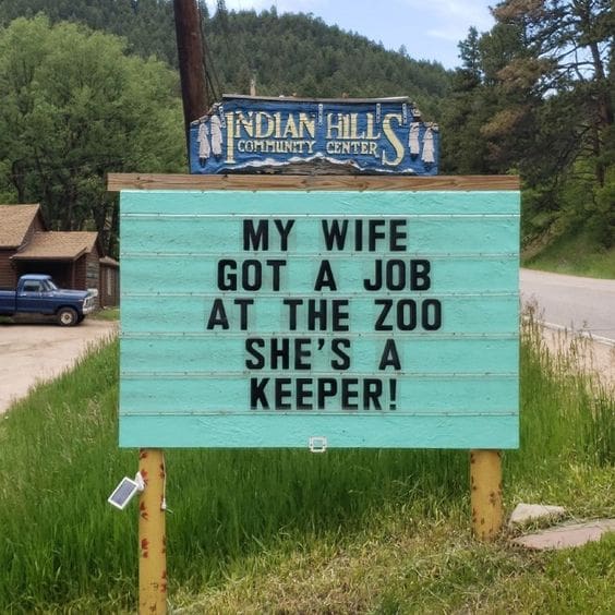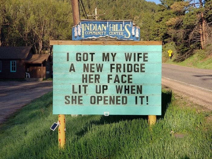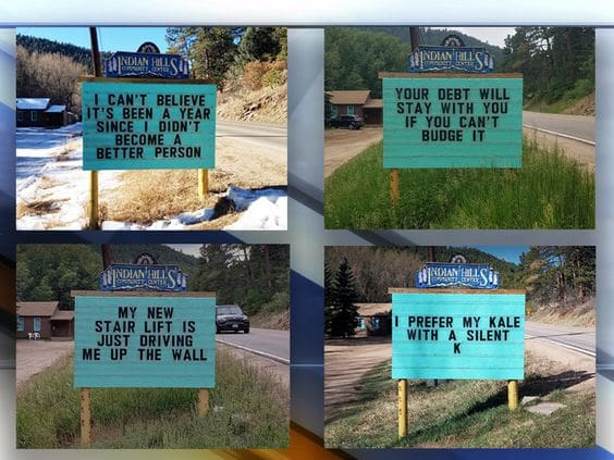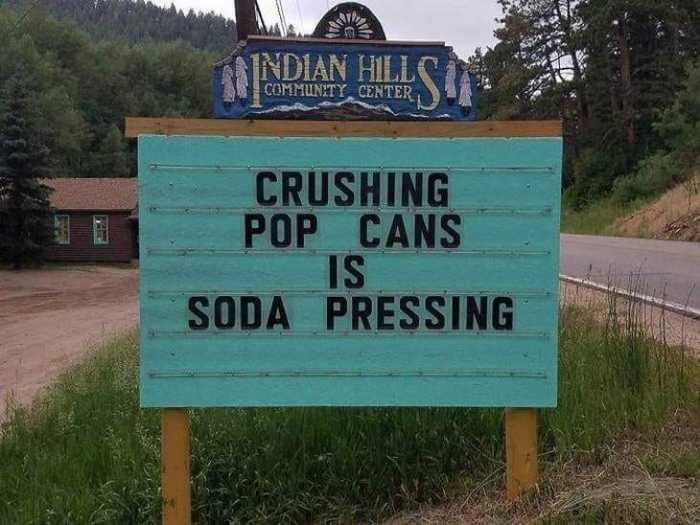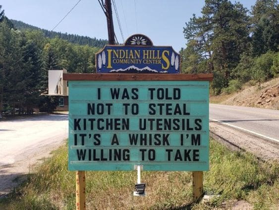 Tagged as funny signs, Indian Hills Colorado Puns, punny