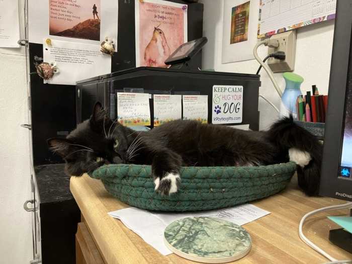 One thing I DON’T like is her biting – with and without warning. I’ll be petting her when she has jumped up on the arm of my chair and she’ll suddenly nip me. Most of the time the bite is kind of like a ‘love bite,’ but I don’t want to encourage it. I am using my cosmetic misting bottle, trying to spray her just as she bites, in order to discourage this behavior. Hopefully, she’ll get the message and stop.