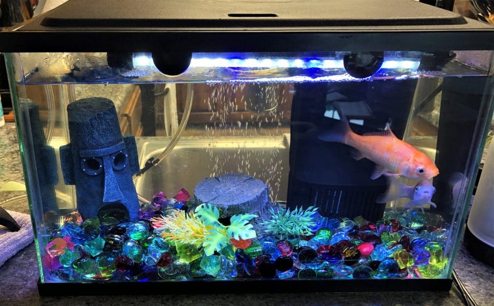 Due to the things I’ve learned and the changes I’ve made, I have to clean the aquarium every 1-1/2 to 2 weeks now, rather than absolutely every week. I have talked to the fish about the alleged pooping contests that I have read that goldfish have, but they don’t seem impressed with my arguments. Apparently, that is just too much fun…