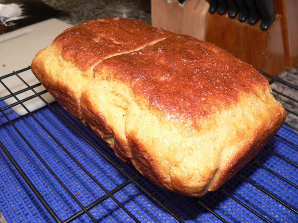 My bread isn’t as pretty as the one shown above, but it sliced nicely, even though I really rushed it on giving it time to cool completely. (my husband loves warm bread and butter. )