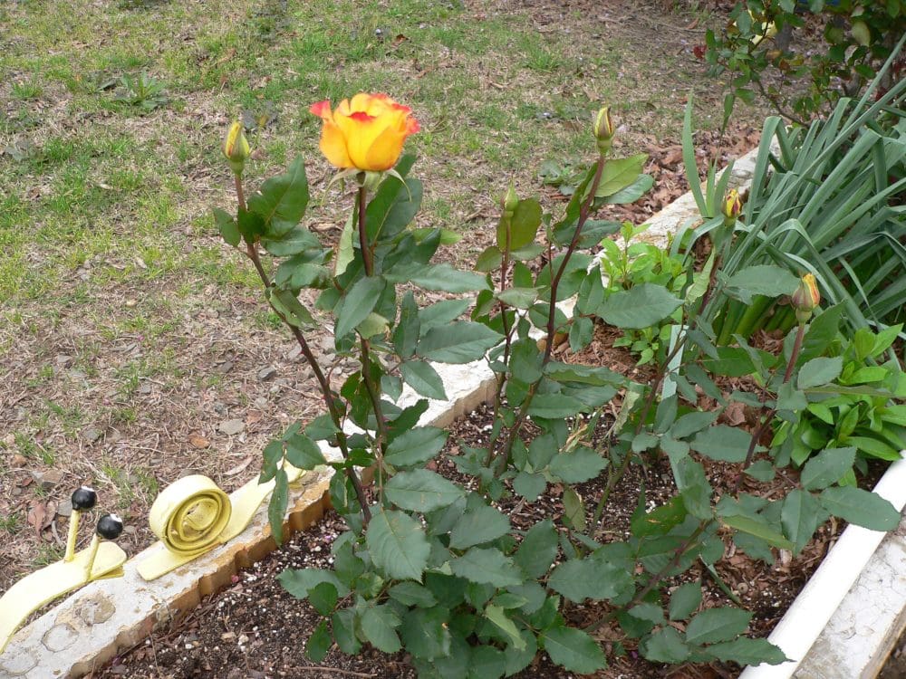 We have buds on the three new Rio Samba rose bushes, and now some of the buds are starting to open up!