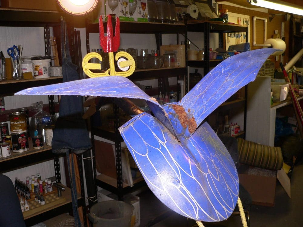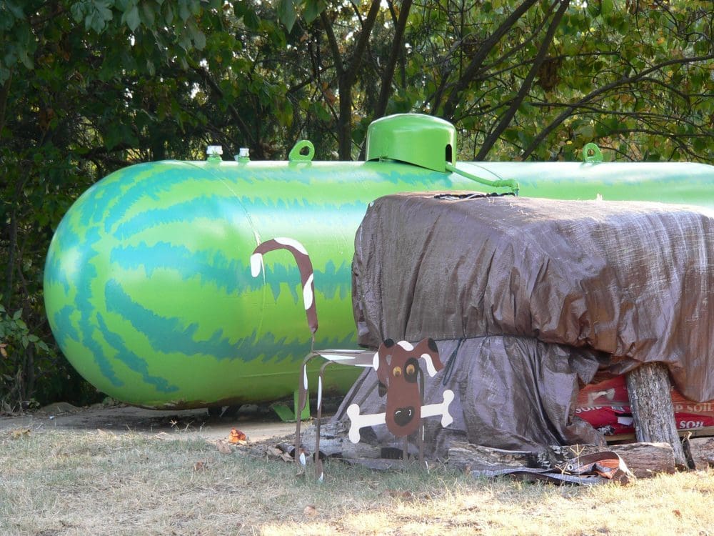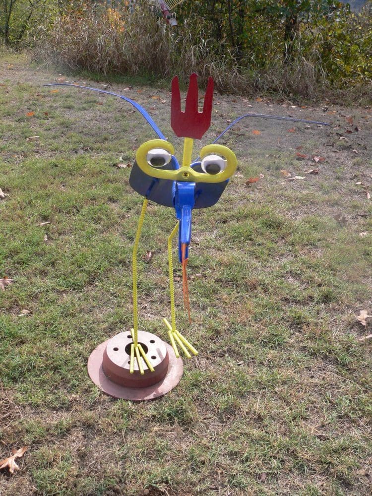 We plan to attach things like shovel birds, dragonflies, and other weird things we make to the tower at various points. The tower is beside our ‘watermelon’ propane tank and will greet people when they get to the top of our driveway.