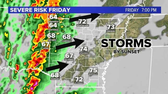 There is a “68” right above Fort Smith, AR in the weather forecast image above. Right below that and to the right a bit, is Greenwood. The red, orange, and yellow blobs are due by sunset, according to the weather folks, and they’re predicting heavy rain, lightning, gusty winds, possible tornadoes, flying hair balls, and ‘throw-in-the-kitchen-sink’ for luck.