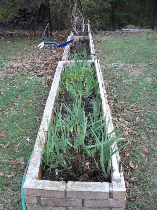On a good note, I’m finished cleaning out and weeding the iris planter now. Today I’m planning to try to get the tomato supports in and wire them to the center pole and then to each other to make them as sturdy as I can.