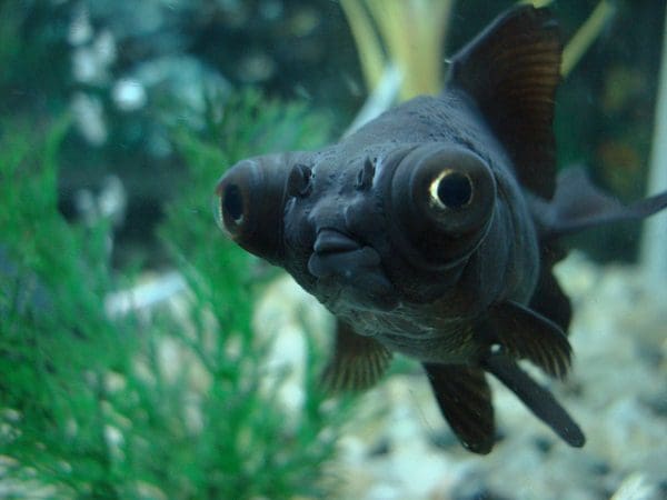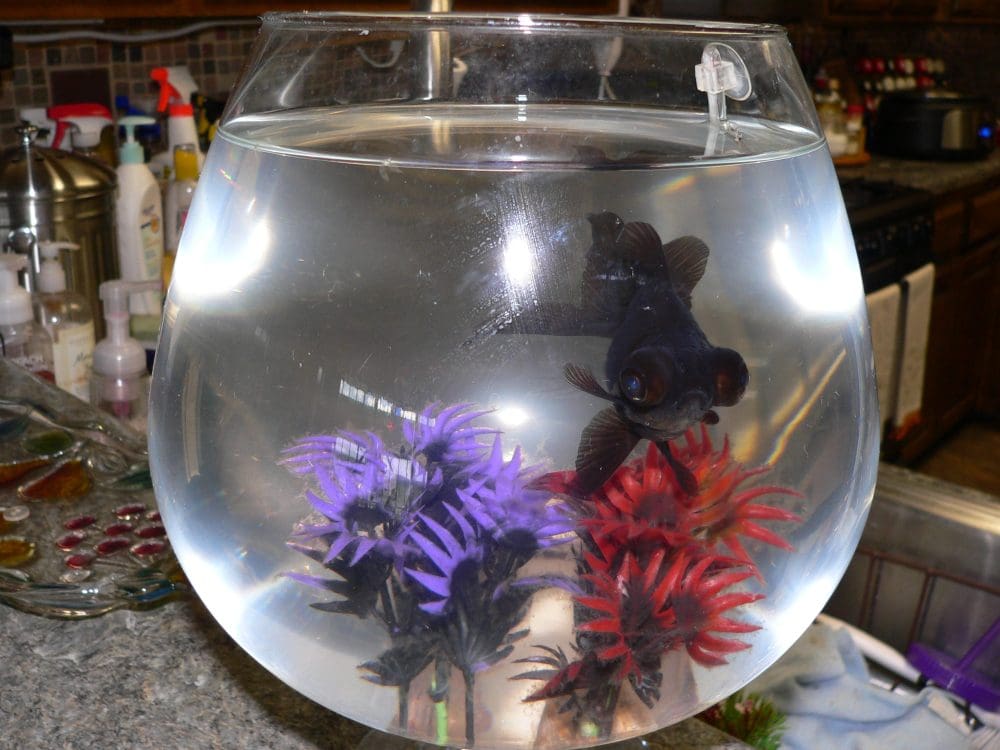 Today we were in Fort Smith, so I bought another fish. This one is black with googly eyes. I looked him up and he is a black variant of a telescope goldfish that has a characteristic pair of protruding eyes. This fish is commonly known as a black moor.
