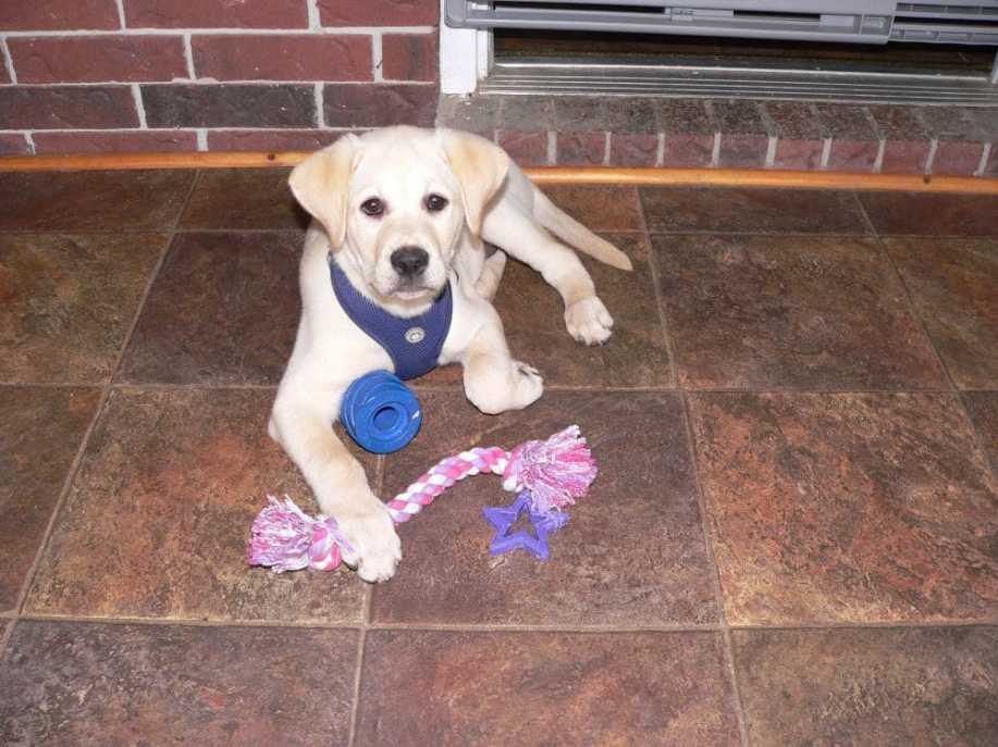 We had our friend, Carla, over yesterday afternoon to meet Amber. She said that labrador retrievers were ‘puppies’ until they are two years old! I may not live long enough to get us through puppyhood if it’s going to be like this for that long. Carla also made a very good suggestion that we use the command, “OFF!” to mean for her to get paws off of us, the table, etc., rather than using “DOWN,” which would mean lying down on the floor. Carla and my brother-in-law, Bill, suggested that we make a point of touching her feet, her mouth, her ears, etc., a lot so that trimming toe nails, putting in ear medicine, and trips to the vet will go much more easily.