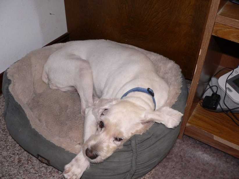 Molly is TRYING to accept the new situation. Amber won’t leave her alone, always jumping up, trying to lick her in the face, trying to get her to play. We’re enforcing ‘together time’ on the porch at least once a day, with one of us out there to monitor. We’re making slow progress. We’re giving Molly lots of extra love and attention to help her with the transition. She sits with one of us in the evenings while we’re watching TV, watching a movie, or reading.