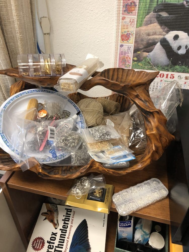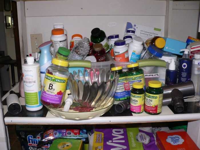Today’s project was to finish the cleaning out of a set of shelves that live next to a window in our office. This was not only a ‘catch-all,’ it had become a ‘stash-all.’ I had piles of articles I had torn out of magazines, like exercises I should be doing, how long to keep things in the freezer, what I should be planting when, how to avoid problems at tax time, etc, etc, etc. I had previous year’s tax paperwork, cards of customers of Creative Artworks, greeting cards ready to send, the pile of stuff we’ll dump on our CPA as soon as we receive our records for the year from Schwab……