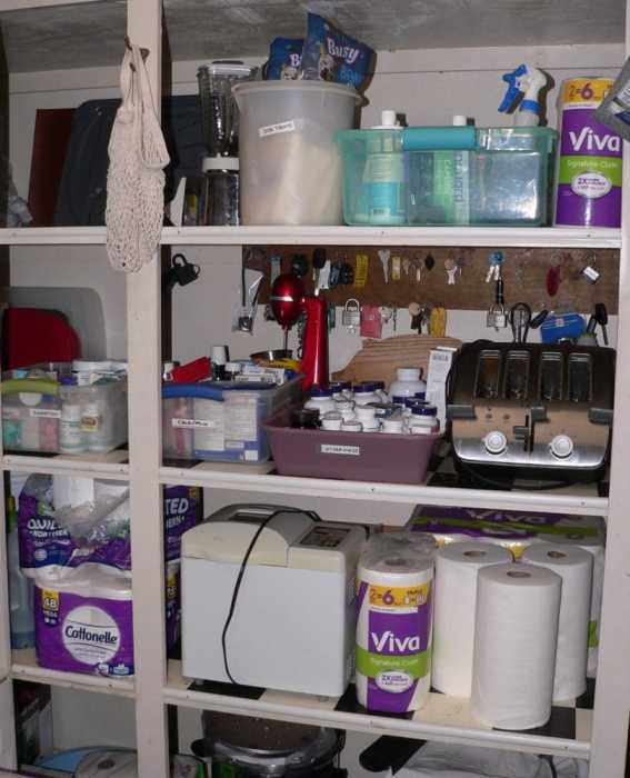 I’ve been working on this set of shelves for three days. I’m not sure if ONLY our lab puppy is shedding, or Molly is, too, and the cats – but I’ve been really fighting animal hair the past few weeks. I’ve vacuumed every day this week in here, plus dusted, and I’m STILL fighting it. And THEN the stashed ‘stuff’ is dusty…