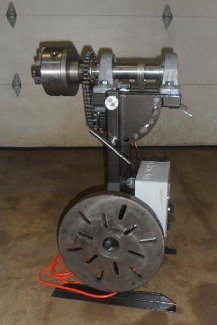 PROJECT 3: The other project we’re working on simultaneously is that my husband is building a “welding lathe or positioner.” This is a tool that would allow him to put a piece he wanted to weld on it. He could weld it at one angle, then turn the piece over, still secured on the positioner, to weld the piece on the other side without having to take it loose, reposition it, etc. This would save a lot of time and effort for him.