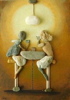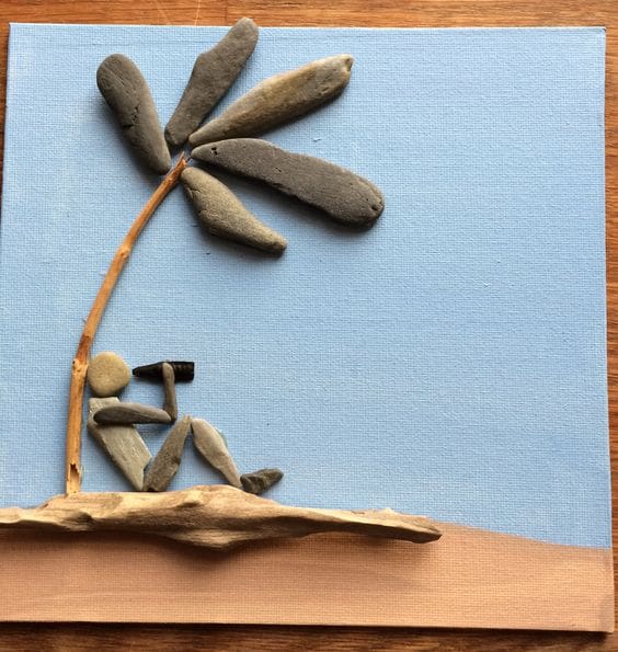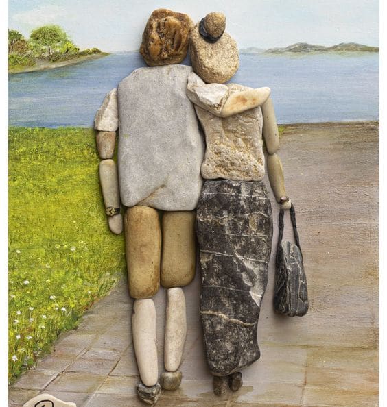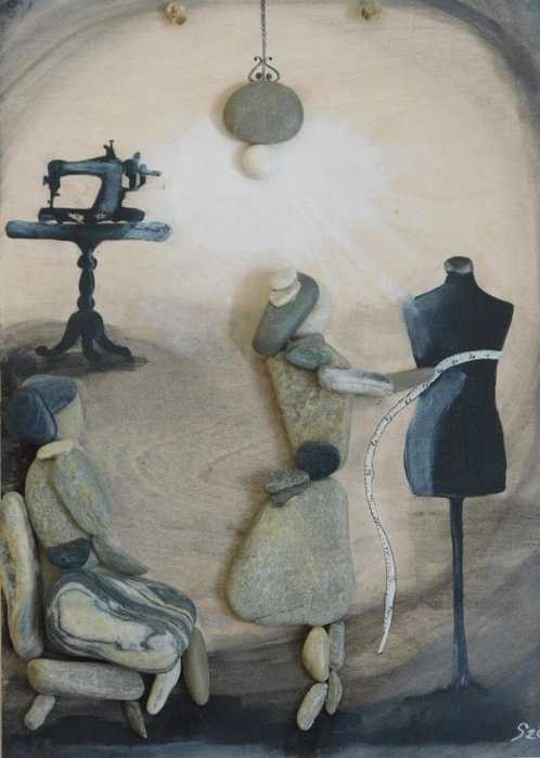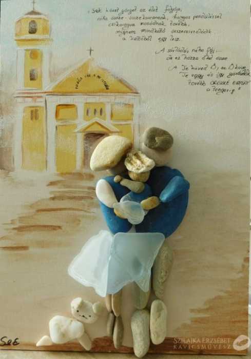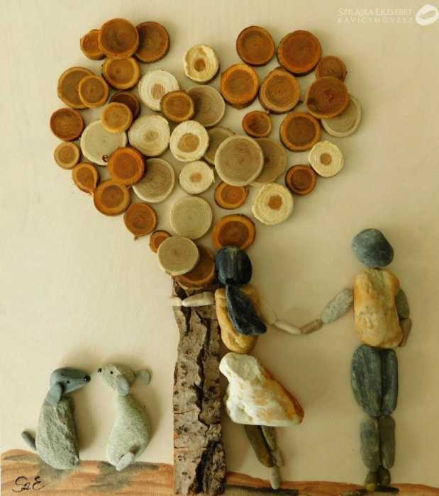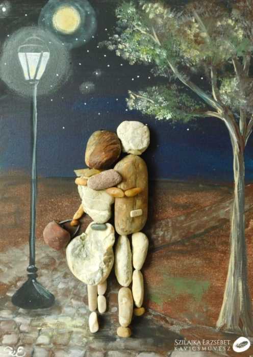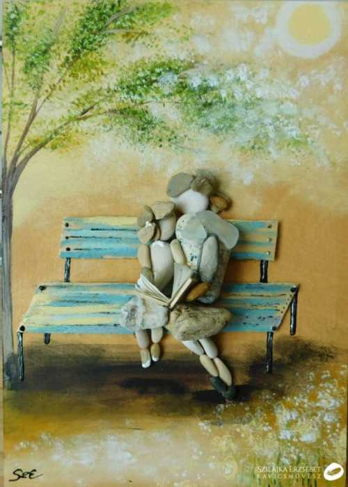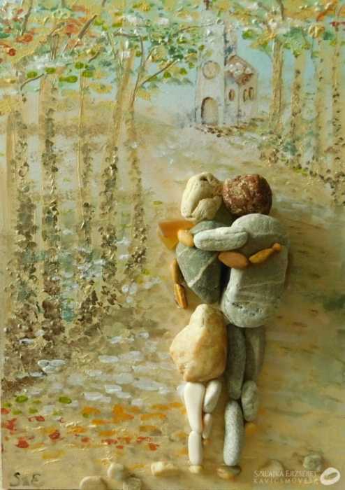 There are several artists who do beautiful work with pebbles or stones. Some even convey emotions with their work. Erzsebet Sziljka brings even more, combining painting and story telling with the emotion. This is truly an art form when she is at the helm.