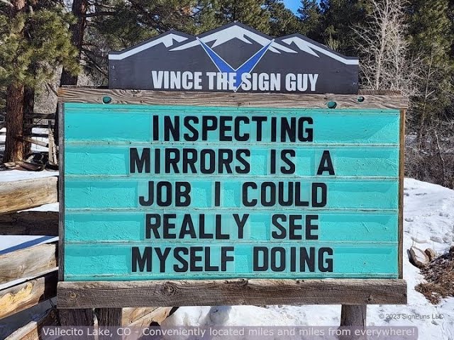 Sigh. Snort, Smirk, Groan, Smile, Laugh. I do them ALL when I see the Indian Hills Signs. I would really love to meet Vince. He would be a challenge to talk with. I would imagine he has a very busy mind.