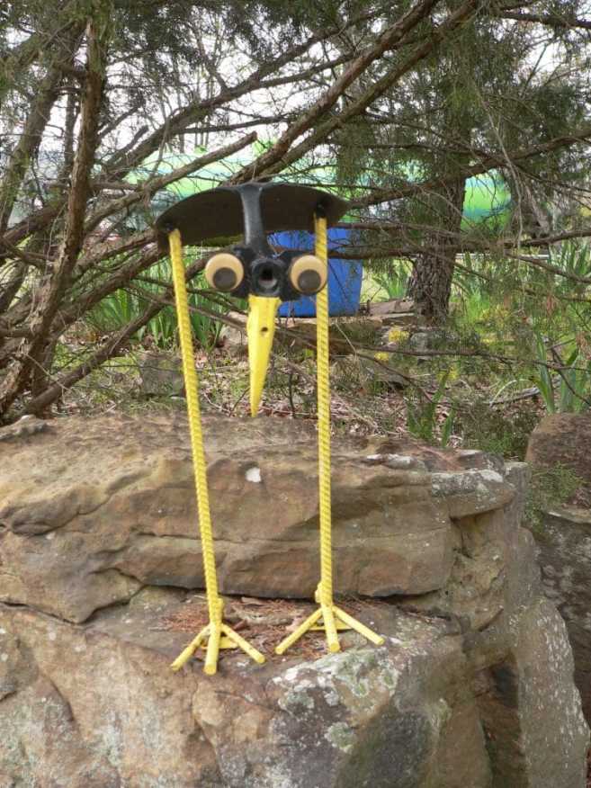 I call this critter the “Crow.” I like him because of his simplicity. He is attached to a big boulder to the side of our driveway, watching all comers.