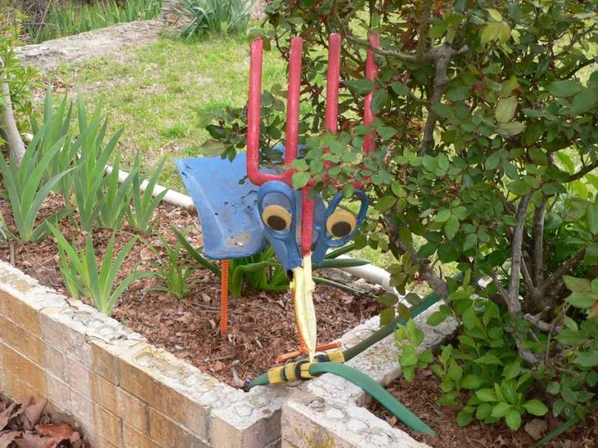 I may need to paint the shovel part of this shovel bird this year after a good scrub. The birds like to eat seeds off his back.