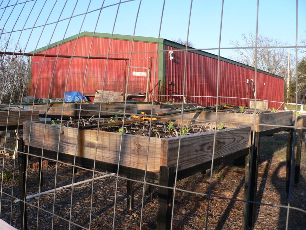 The raised bed square foot garden consists of six 4’x4′ wooden boxes about my chest level filled with Mel’s Mix (a combination of peat moss, vermiculite, and three or more kinds of compost.) The boxes are divided into ‘squares’ by stretched string. I have opted to space things out a lot more this year because I lost a lot of produce by having the plants growing into each other. I decided to opt for a lot more air and space for each plant and see what happens.