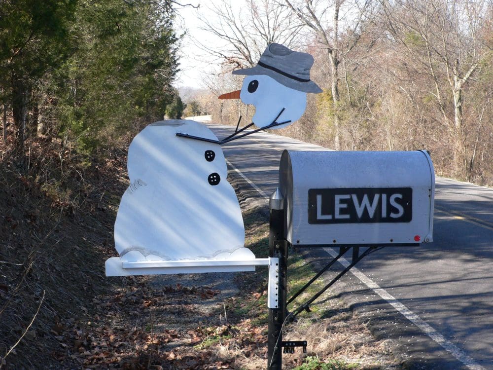 This is one of the mailbox decorations my husband and I have made over the years. We don’t have it down there now because we can’t GET down our driveway in one piece yet. Hopefully, one day soon…