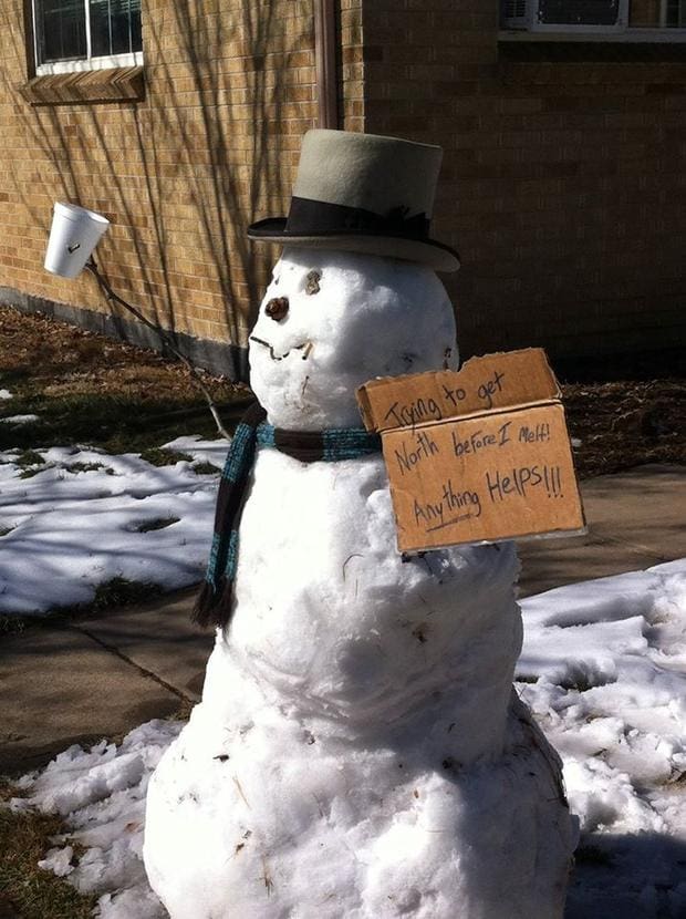 One of my favorite things is to look on the net to find snow people I haven’t seen before and share them. I’m so happy to live on the same planet as people who not only think outside the box, but burn the box! There is so much humor and creativity out there.