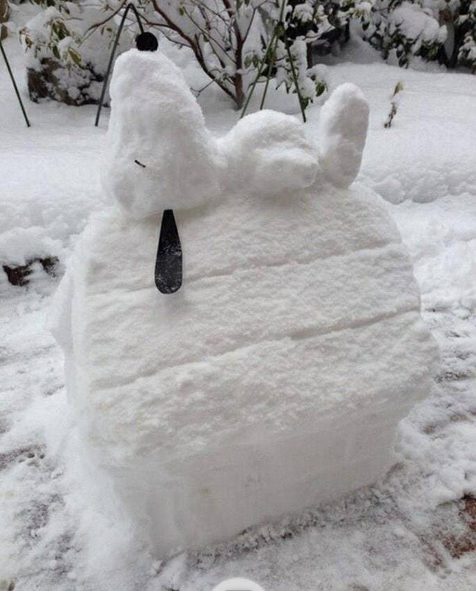 I’ve decided to try to cheer myself up a bit over the next few (I HOPE!) snowed-in days by finding snow men and snow people creative people have made, and I’ll share them with you.