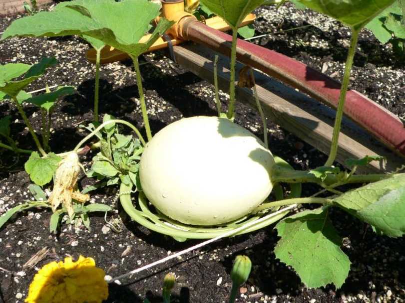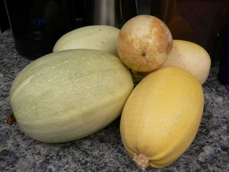 I’m still really pleased that I was able to save the seeds from one spaghetti squash I bought at the store, planted two seeds in pots in the kitchen and put them on the window sill. When they got large enough, I transferred them into my raised bed, square foot garden. I had no clue whether they would grow or not. The vines ended up taking up two of the 4×4 foot planters. The plants weren’t very ‘pretty,’ but I think getting at least 8 spaghetti squash from this experiment could be called a success. :0)