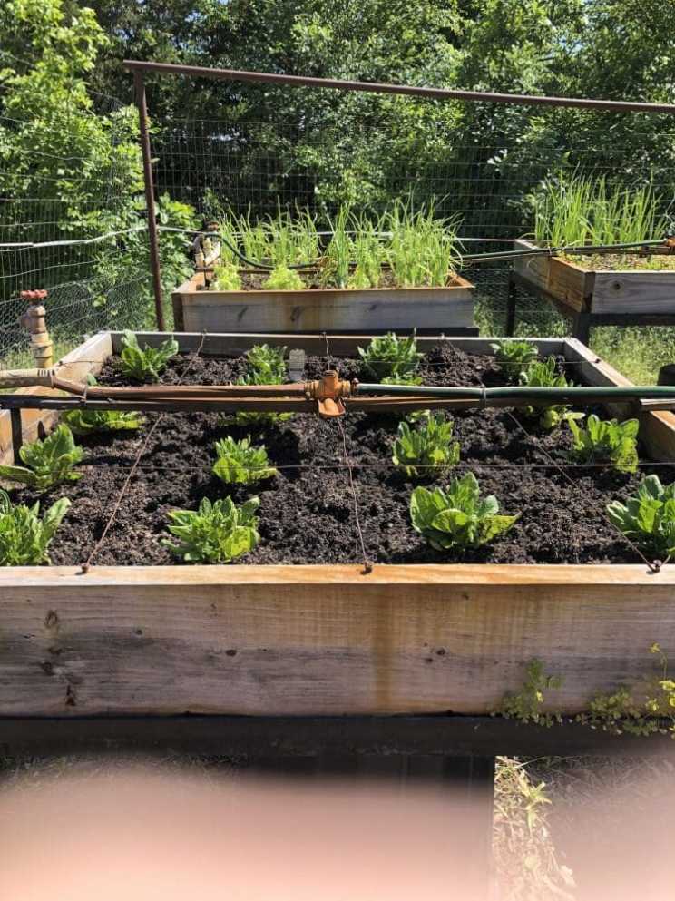 I spent most of the day in my veggie garden today. I started weeding and harvesting the lettuce, brought that in and rested. Then I went out again and did the same, bringing in another full basket. I then weed whacked under the garden boxes, and finally sprayed weed killer under the boxes and around the inside perimeter.