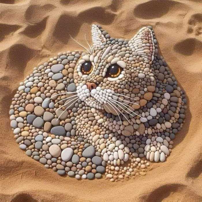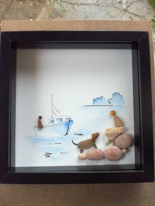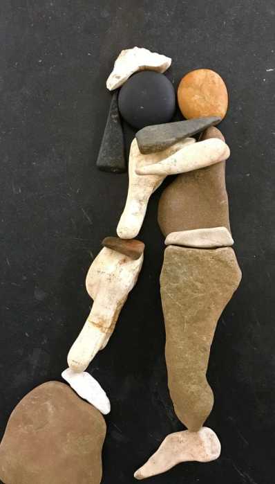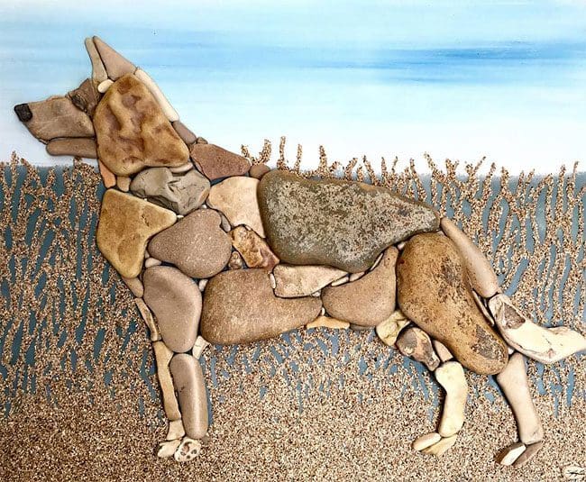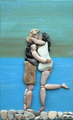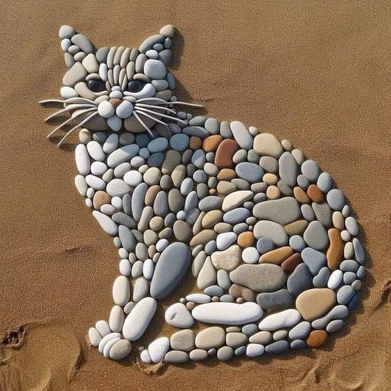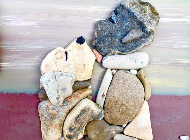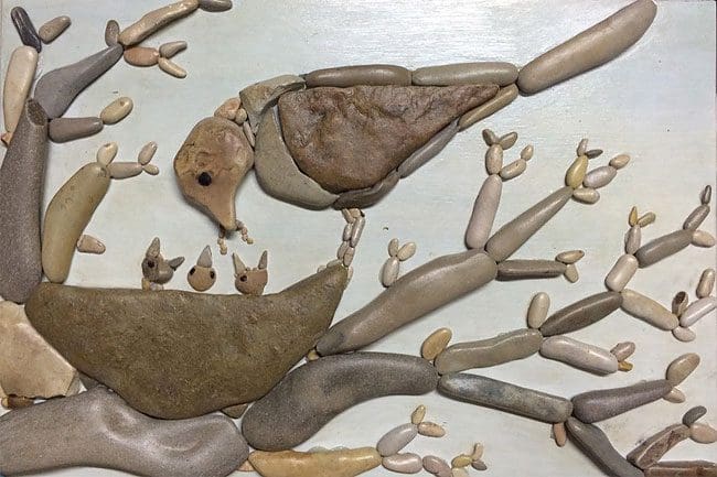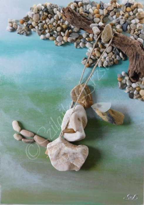 I’m totally in awe of this woman’s talent. She arranges PEBBLES on a flat space and makes you FEEL. And, not only does she do that, bringing it to an art form, but mixes media, painting details and backgrounds to make each one a true work of art. Mind-boggling.