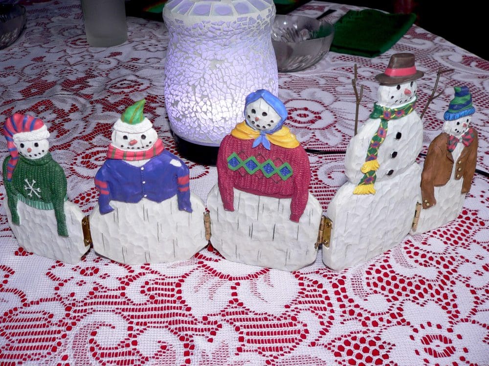 Tagged as Christmas Eve dinner preparations, diffuser, friends for the holiday, snow people, table decorations