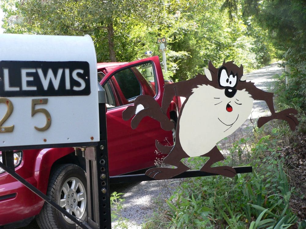 We usually change the decoration twice each month, putting up something special for each holiday. Since the pandemic began, we’ve just had the Tasmanian Devil up. (below)
