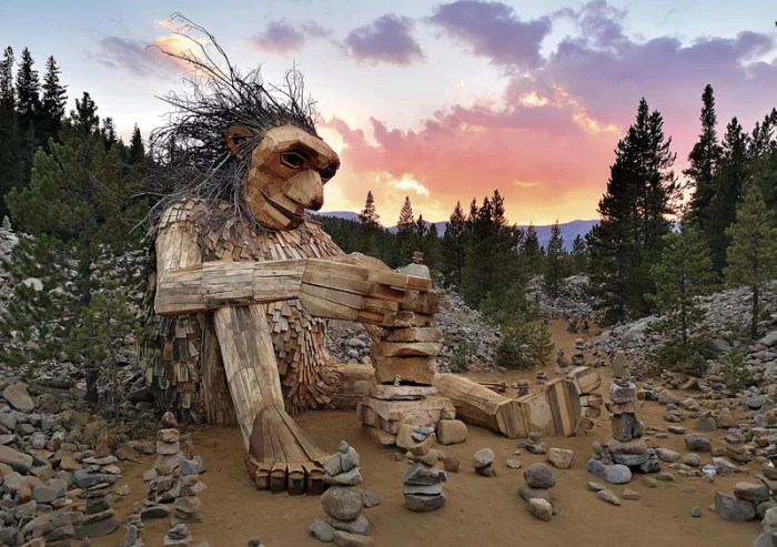I found these via Pinterest. I think the artist is Thomas Dambo, a Danish artist.