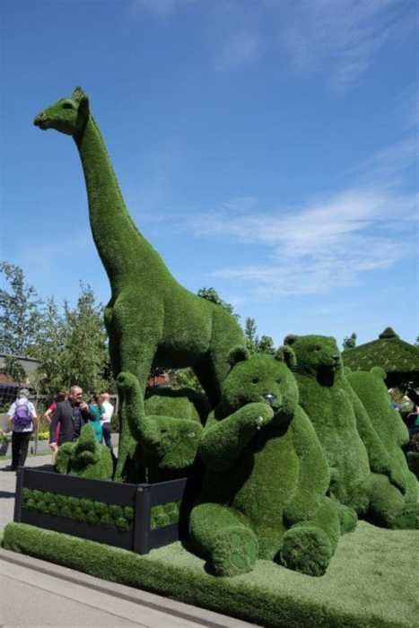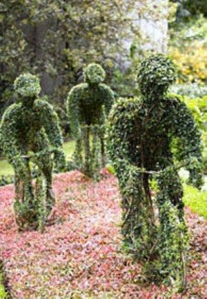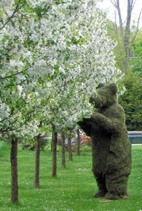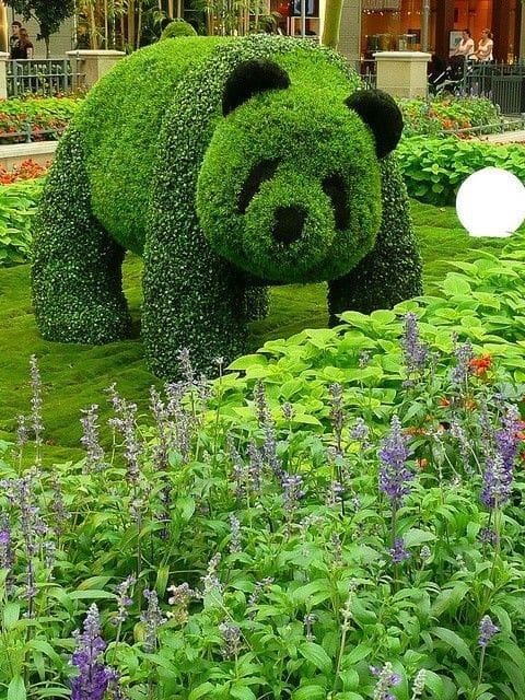It’s probably strange, but I really don’t like yards or gardens where the bushes have all been rounded carefully like balls or cones, but I LOVE it when the greenery is made to look like animals or people. I guess the process then moves – in my weird mind – from manipulation and control and rigidness to creativity – making me smile or laugh. The creation above is my favorite of all time, so far. I think it’s magnificent.