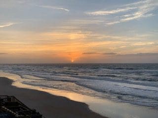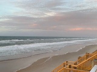 It’s been a wonderful feast for the eyes. Thanks to her, we’ve enjoyed a couple of stunning sunrises, lots of waves, one small glimpse of a sandpiper (they weren’t feeling cooperative this trip), a treasure trove of ‘goodies,’ and lots of relaxation.