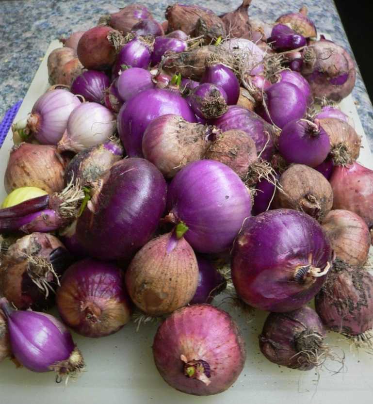 I finally harvested our onions from the garden. I still need to clean them up a bit more, and then I’ll put them in a large, stretchy, mesh bag and hang it in the pantry.