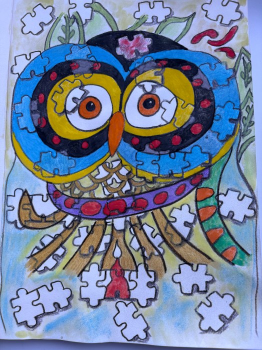 I’m going to see if I can draw and paint this, just for giggles. I took the owls puzzle apart this morning. It is now neatly in a gallon baggie with the picture. I’m going to put it in the area where – if you want it – you can take it. Brian ordered the glass print of the finished puzzle today! 🥳