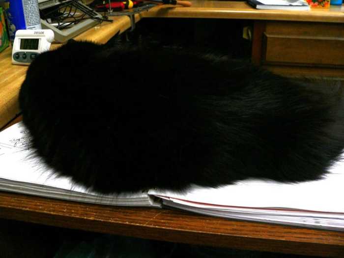 When we first adopted “Monster Cat,” (aka Jet) I got out a woven ‘bread basket’ and put it on the counter to the left side of my computer monitors so that we could hang out together and she could be comfortable while I worked.